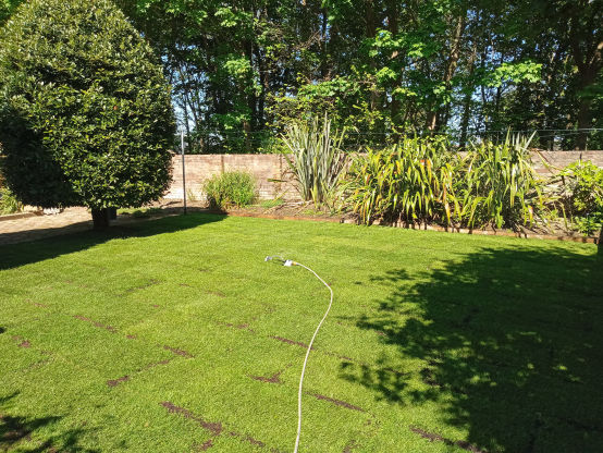 Replacement of two lawns for a customer. Old turf was stripped and then the ground was thoroughly rotavated and levelled, then given some slow release organic fertiliser before finally having some top quality Rowlawn Medallion turf was laid.